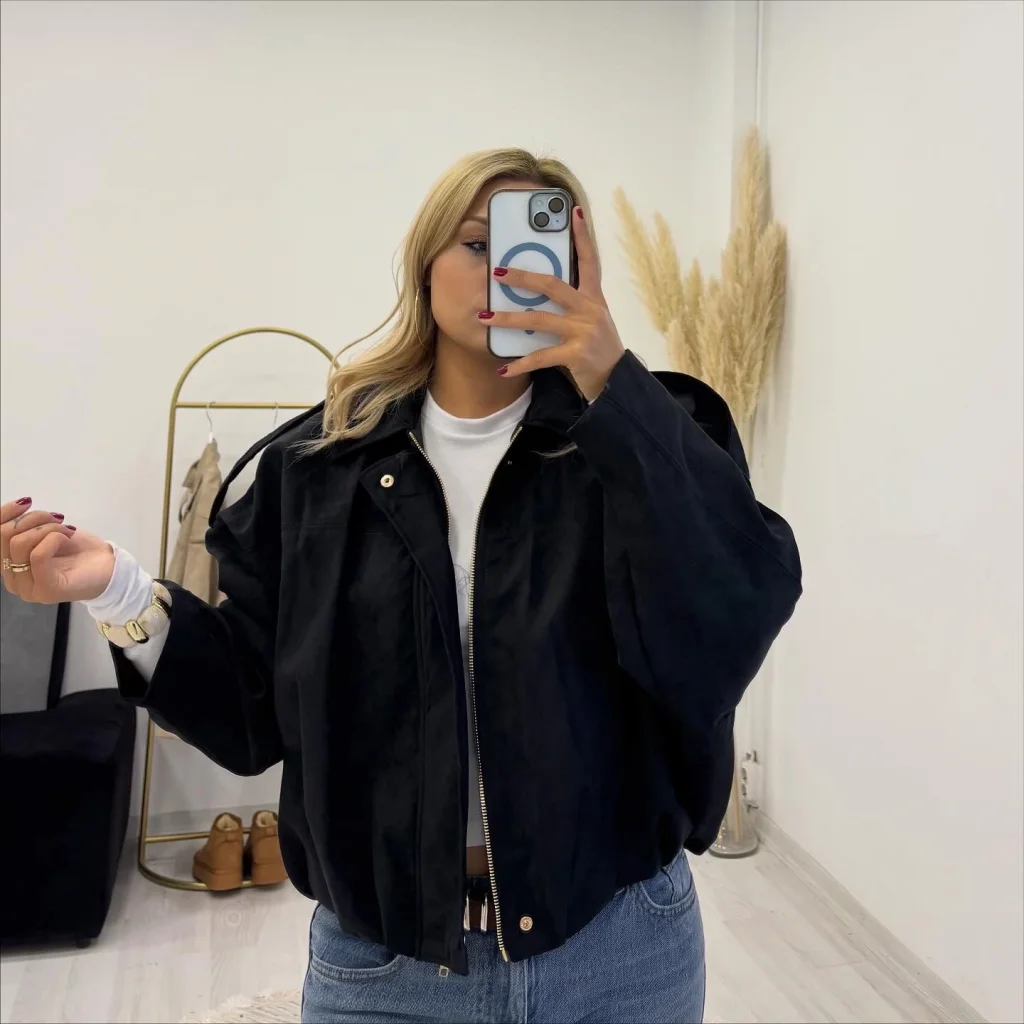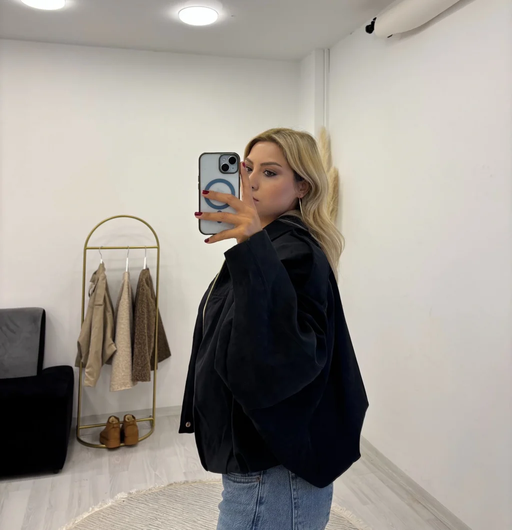 Fermuarlı Oversize Bomber Ceket ile konforlu ve modern bir stil yaratın. Geçiş mevsimlerinin ve serin yaz akşamlarının kurtarıcısı olan bu ceket, geniş (oversize) kalıbı sayesinde rahat bir kullanım sunar.