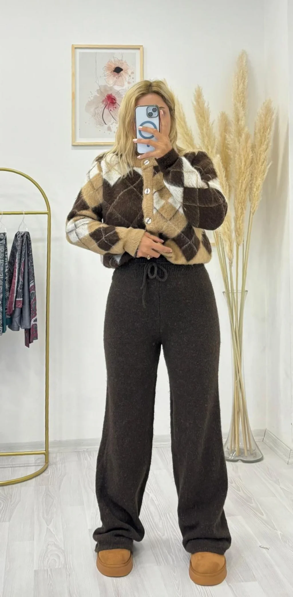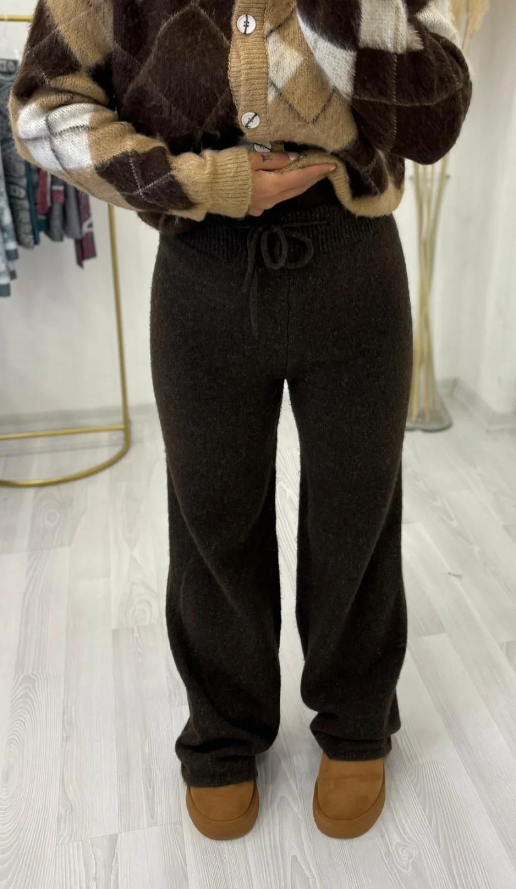 Yumuşak Örgü Geniş Paça Rahat Kesim Pantolon