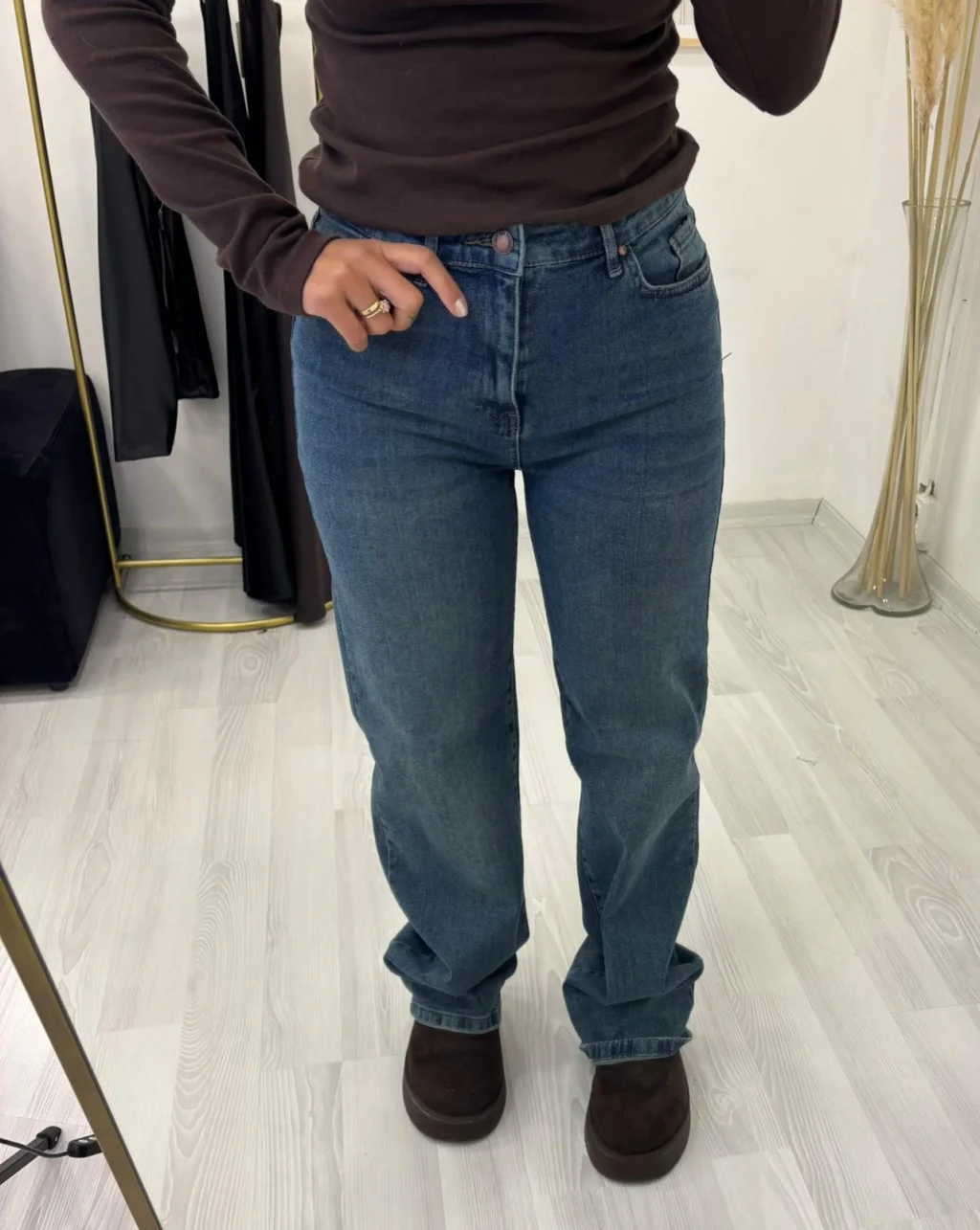 Yüksek Bel Düz Paça Klasik Bitişli Jean Pantolon, jean trendlerinin vazgeçilmezi olan düz paça rahatlığını, zamansız orta mavi rengiyle birleştiriyor. Rahat, şık ve dört mevsim kullanıma uygun temel bir parçadır.