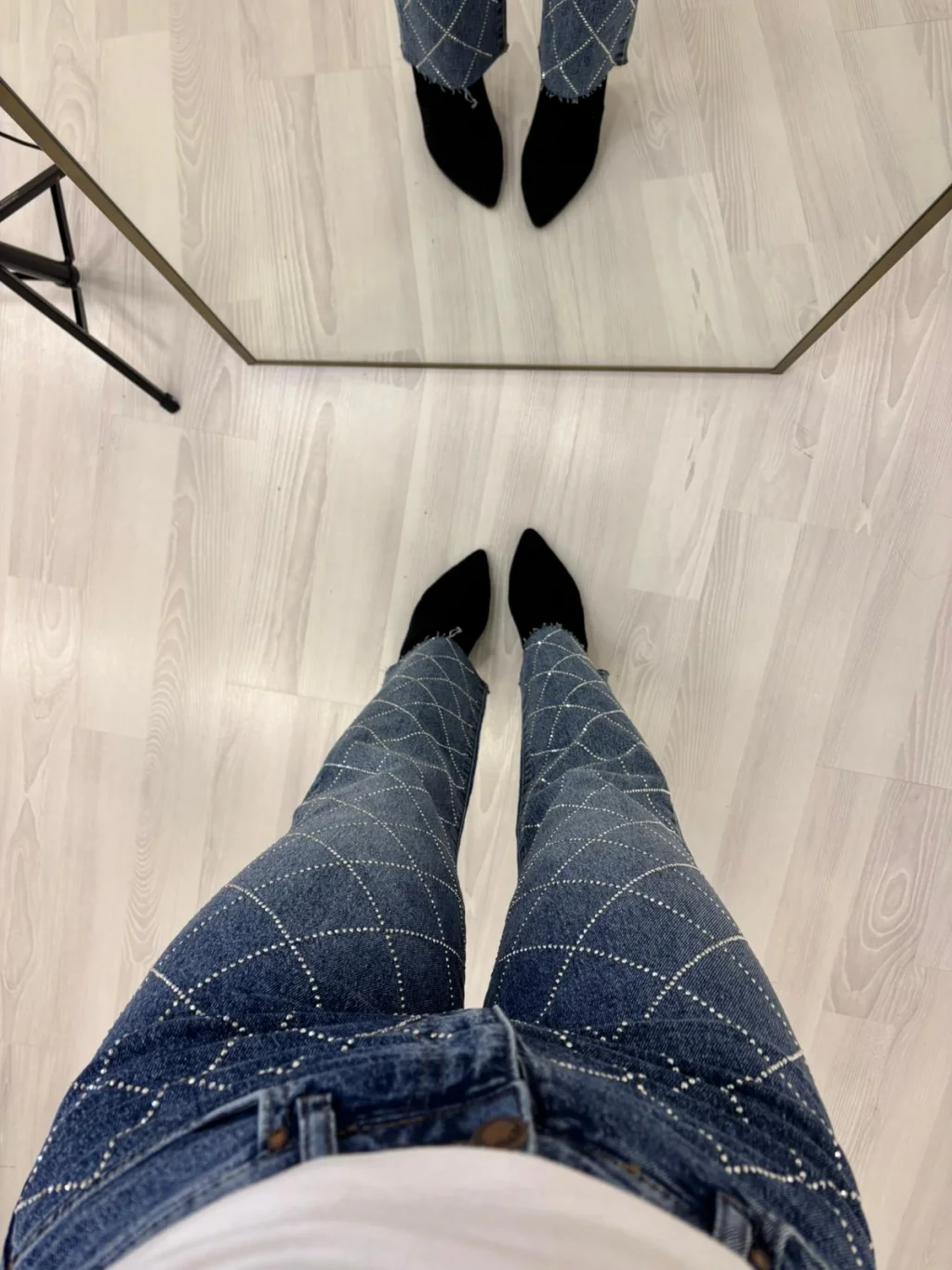"Yüksek Bel Taş İşlemeli Baklava Desenli Jean Pantolon, klasik jean rahatlığını, ışıltılı ve iddialı bir detayla buluşturur. Gündüz şıklığından gece kombinlerine kolayca adapte olabilen, dikkat çekici bir alt giyim parçasıdır.