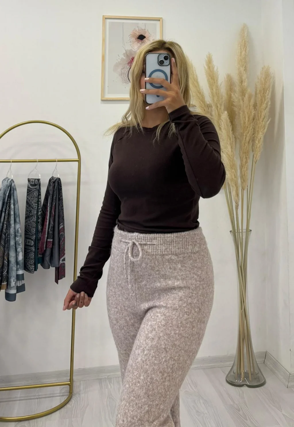 • Yumuşak melanj triko kumaştan yapılmış, beli bağcıklı ve rahat bol paça kesimli pantolon. Şık ve konforlu ev giyiminden dış mekan casual kombinlerine idealdir. Bej, gri, siyah ve kahverengi renkleri mevcuttur."