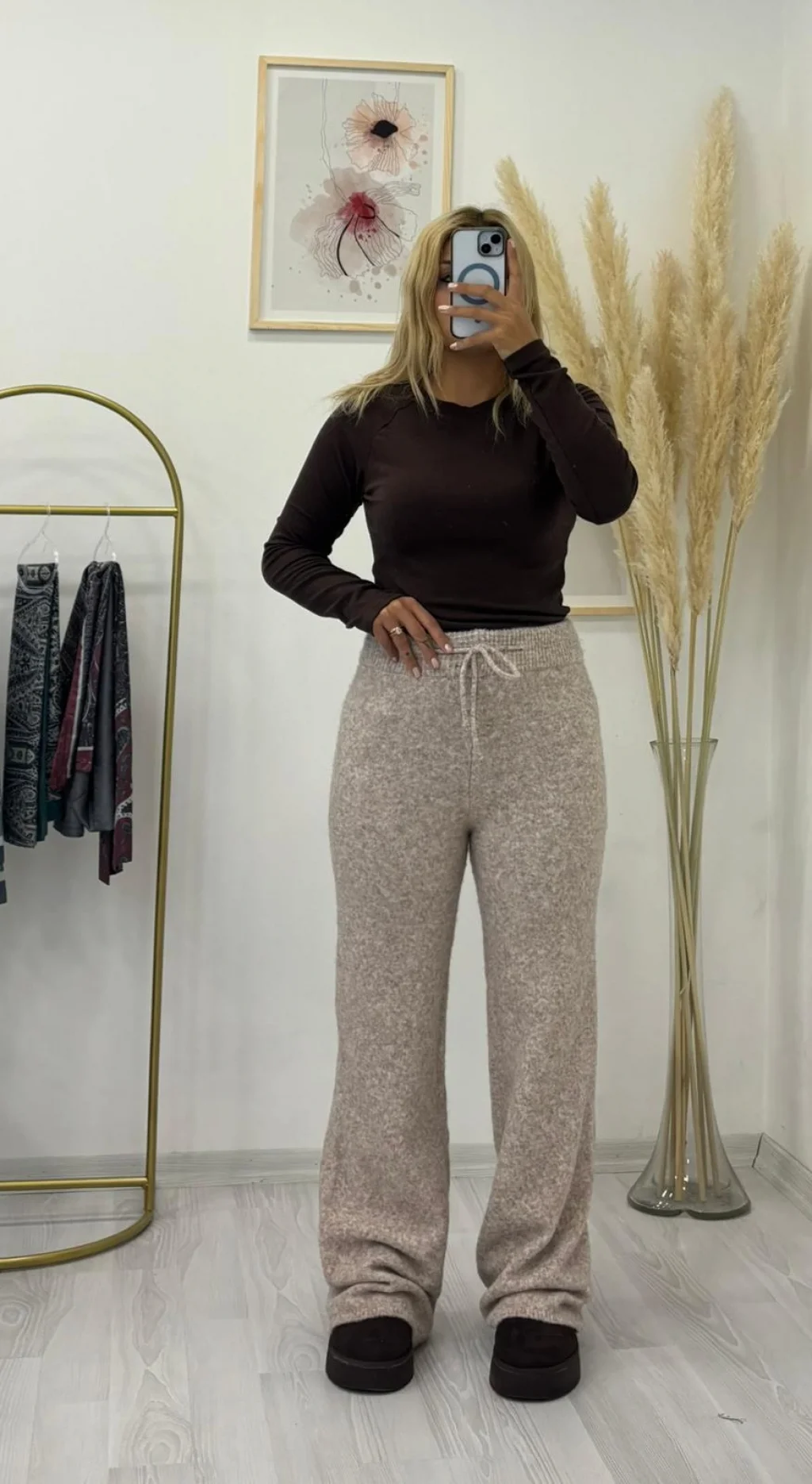Yumuşak Örgü Geniş Paça Rahat Kesim Pantolon
